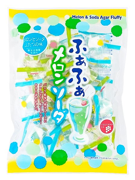バニラ風味の寒天ムースにメロン、ソーダゼリーをちりばめました。※メロン香料使用