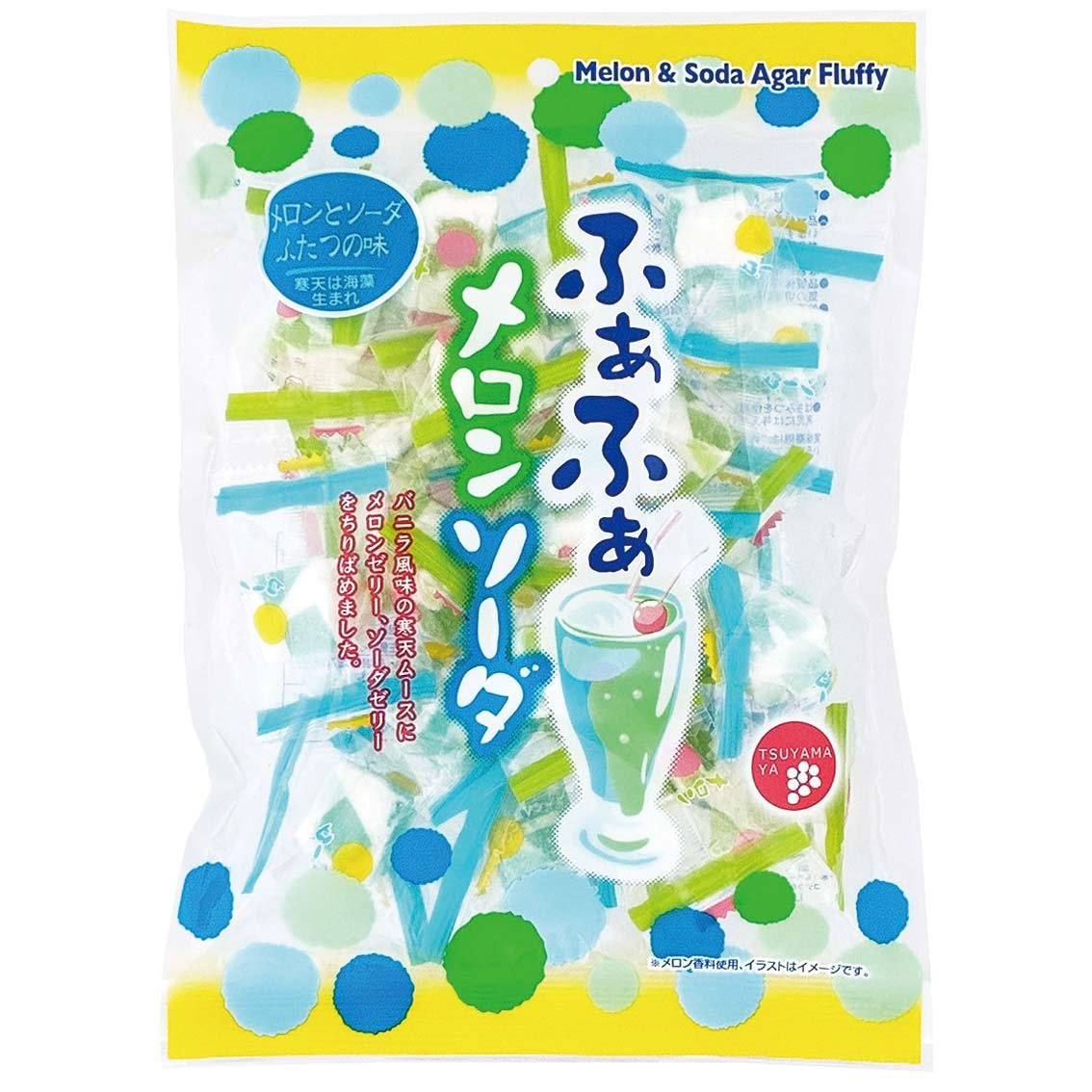 バニラ風味の寒天ムースにメロン、ソーダゼリーをちりばめました。※メロン香料使用